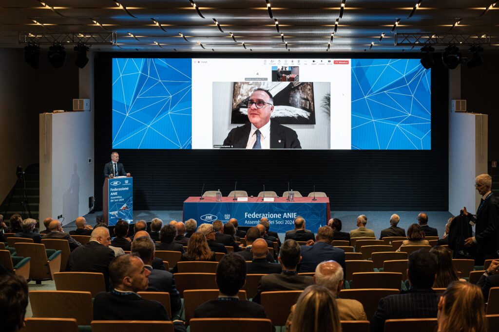 Il Presidente di ANIE Federazione Filippo Girardi ha aperto l’Assemblea, seguito dall’intervento del Presidente di Confindustria Emanuele Orsini.