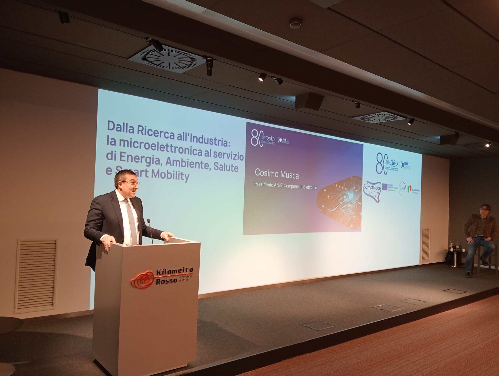 «La microelettronica è il cuore pulsante dell’innovazione tecnologica – ha dichiarato Cosimo Musca, Presidente di ANIE Componenti Elettronicie rappresenta oggi una leva strategica per affrontare le grandi sfide del nostro tempo: la transizione energetica, la mobilità sostenibile, la tutela dell’ambiente e la salute delle persone. L’industria dei componenti elettronici è tra i comparti a più elevata intensità di ricerca e innovazione in Italia, destinando circa il 14% del fatturato alle attività di R&S: un impegno concreto che ci colloca tra i motori fondamentali dell’innovazione nazionale.” “Come ANIE Componenti Elettronici – ha proseguito Musca – crediamo fermamente nel valore della collaborazione tra industria, ricerca e istituzioni per trasformare la conoscenza in soluzioni concrete, utili al Paese e competitive sui mercati internazionali e nel ruolo strategico delle nostre attività di trasferimento tecnologico, fondamentali per accelerare l’adozione industriale delle innovazioni sviluppate. L’evento di oggi è la dimostrazione di quanto sia importante sostenere una filiera nazionale forte, innovativa e capace di generare impatto industriale duraturo.»