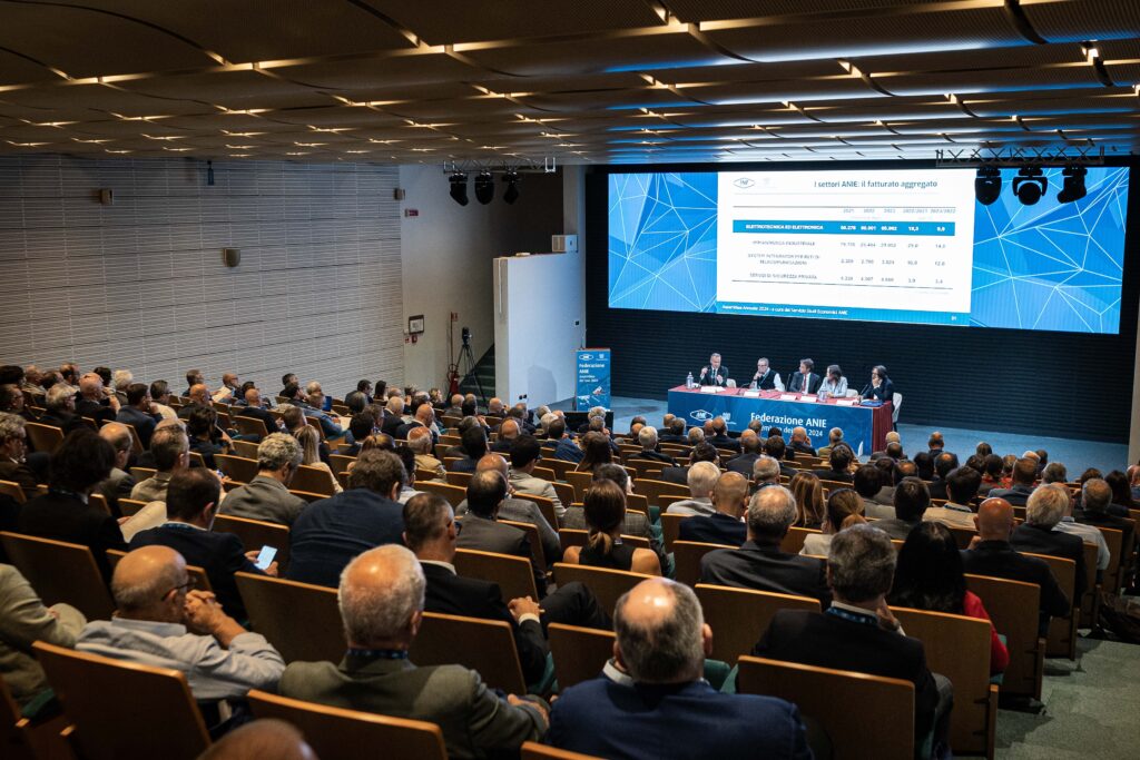 Sono alcuni dei dati presentati nel corso dell’Assemblea dei Soci di Anie Federazione, svoltasi il 20 giugno 2024 presso il Grand Hotel Villa Torretta di Sesto San Giovanni, con oltre 200 imprenditori in presenza e la partecipazione del neoeletto Presidente di Confindustria Emanuele Orsini, intervenuto in collegamento per i saluti d’apertura. “Progresso tecnologico, Economia e Geopolitica: scenari futuri per le imprese di Anie”, il tema della Tavola Rotonda a cui hanno partecipato, insieme al Presidente di Anie Filippo Girardi, Alessandro Fontana, Direttore del Centro Studi Confindustria, Letizia Borgomeo, Economista di Intesa San Paolo e Andrea Colli, Professore ordinario di Storia economica dell’Università Bocconi, con la moderazione di Walter Galbiati, Vice Direttore di Repubblica.